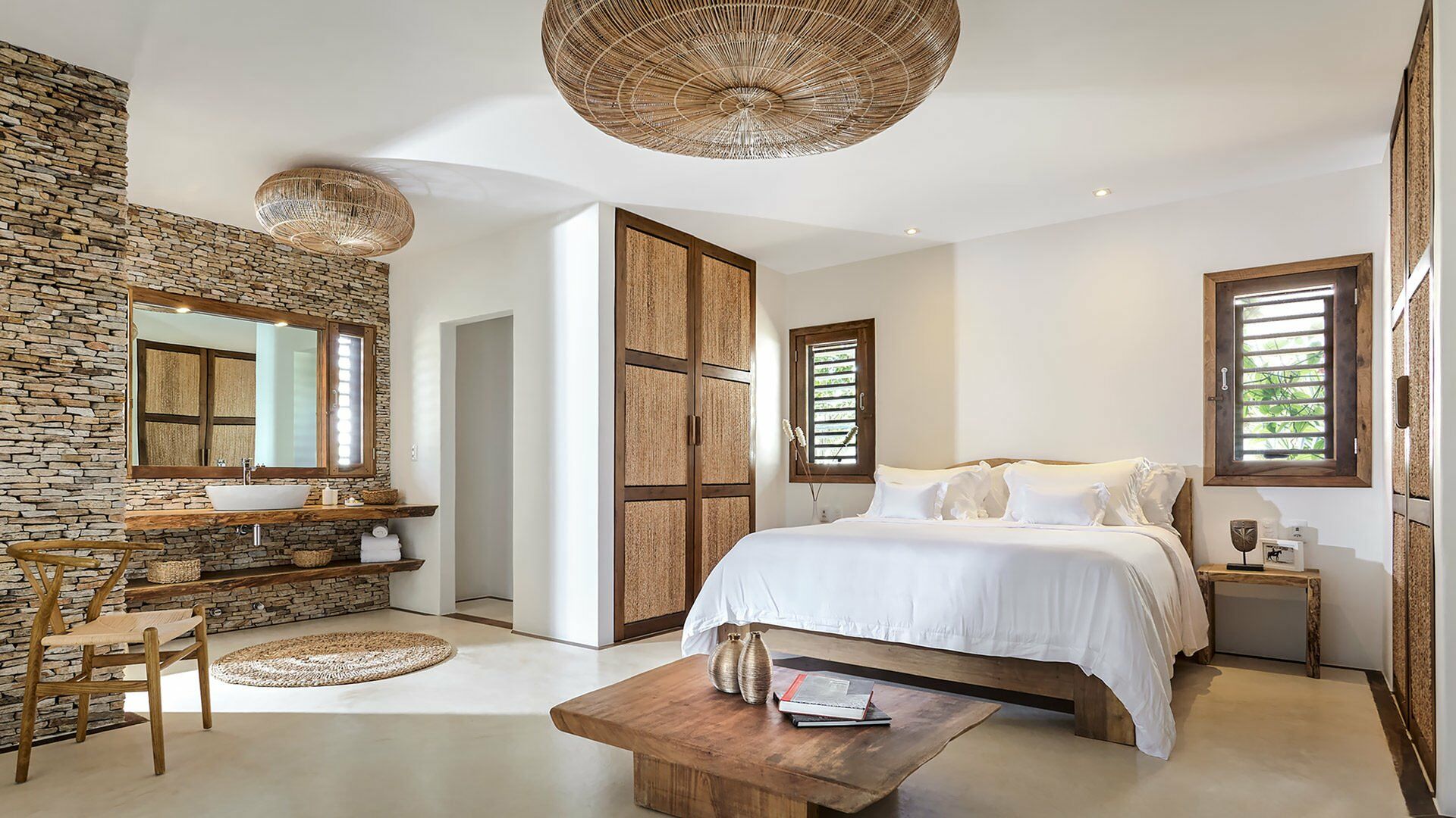 Esta espaçosa suíte conta com uma grande varanda privativa, perfeita para desfrutar de momentos de tranquilidade a dois. O espaço de banho é aberto para o quarto, que permite a circulação de ar, proporcionando sensação de liberdade e conexão.